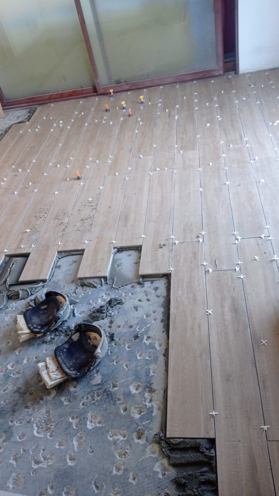 Cada instalación de porcelanato es un trabajo único, realizado con dedicación artesanal y materiales de alta calidad. En este proyecto, el porcelanato fue instalado sobre cerámica existente, utilizando adhesivo piso sobre piso de alta tecnología, de rápido fraguado y alta resistencia, garantizando un resultado duradero.